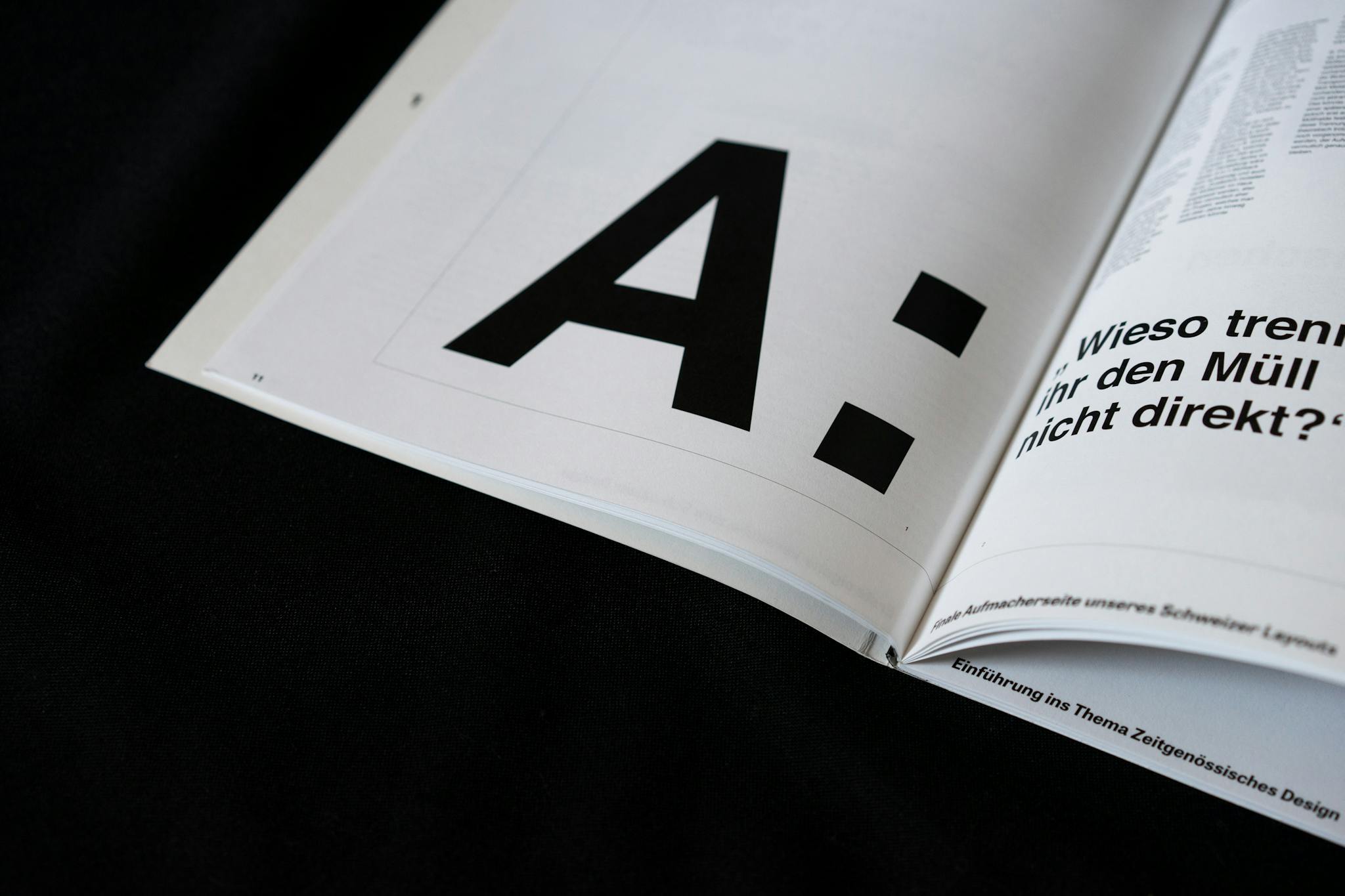 Im zweiten Semester erarbeitete ich zusammen mit Silvia Rau Merkmale unterschiedlicher Layout-Stile. Unsere Ergebnisse fassten wir anhand von Beispielen und eigenen Layouts in einem Magazin zusammen. Es stellt eine Übersicht vom klassisch schweizerischen, bis hin zum heutigen zeitgenössischen Design dar.
