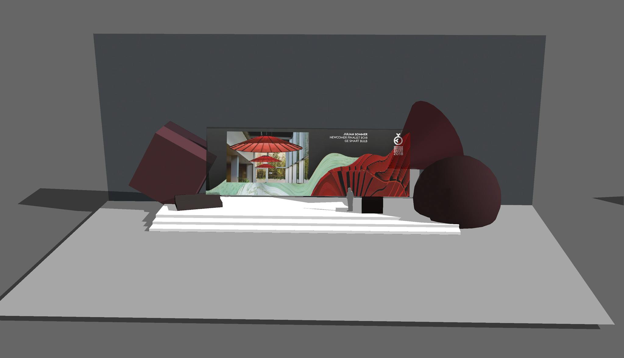In order not to distract from the actual awarded product photos, the background should not be too much in focus. The presentation of the nominated products should still be unique. Abstract animations were created from shapes designed in Cinema 4D. These stand out due to their diverse textures. These compositions were used for the different media like the stage and the separating pages of the catalogue.